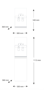 Datos técnicos: · Membrana encapsulada de 100GPD. (FRO1061, FRO1062). · Membrana de ultrafiltración. (FRO1063). · Fuente de alimentación: 220~240V~. 50/60 Hz. · Corriente nominal: 0,6A. · Potencia de calentamiento: 450-550W. · Potencia de refrigeración: 100W. · Refrigerante: R-600a (19g). · Agua aplicable: Agua municipal. · Capacidad depósito agua fría: 3,8L. · Capacidad depósito agua caliente: 2L. (FRO1061, FRO1062) · Capacidad depósito agua caliente: 1,5L. (FRO1063) · Prefiltro de polipropileno de 2,5” espiga ¼”. · Prefiltro de carbón 2,5” espiga ¼”. · Postfiltro de carbón 2,5” espiga ¼”. · Dimensiones: 360 x 300 x 520 mm. (FRO1061). · Dimensiones: 360 x 300 x 1115 mm. (FRO1062, FRO1063)